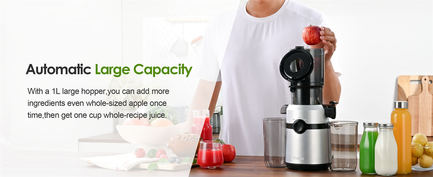 Grande goulotte d'alimentation de 10,8 cm (4,25 pouces), capacité de 1 L, convient aux fruits entiers